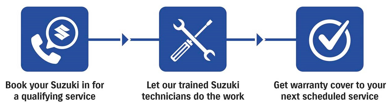 Every Suzuki road-bike comes with the same quality assurance. To keep it that way, after your 3-year standard warranty ends, every time you have a qualifying service with us, we’ll give you a new Service Activated Warranty* that covers you through to your next service.